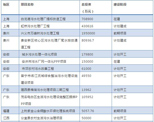 (一)13省投1203.18亿元建设155个重点污水处理项目